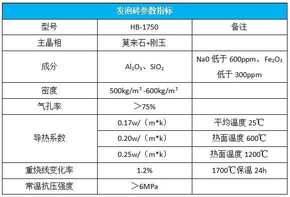 發(fā)泡磚 本產(chǎn)品是一種輕質節(jié)能保溫隔熱的爐膛內襯材料,主要作為使用溫度1600℃-1800℃的窯爐內襯材料。傳統(tǒng)重質耐火材料具有密度大,蓄熱高,升溫慢,隔熱效果差,能耗高的問題。雖然纖維板可以解決以上問題,但纖維板強度低,使用壽命短,價格昂貴,性價比低。本產(chǎn)品可以取代以上兩種材料,同時兼顧兩種材料的優(yōu)點,具有輕質,節(jié)能,強度高,保溫效果好,使用壽命長,性價比高的優(yōu)點。性能特點